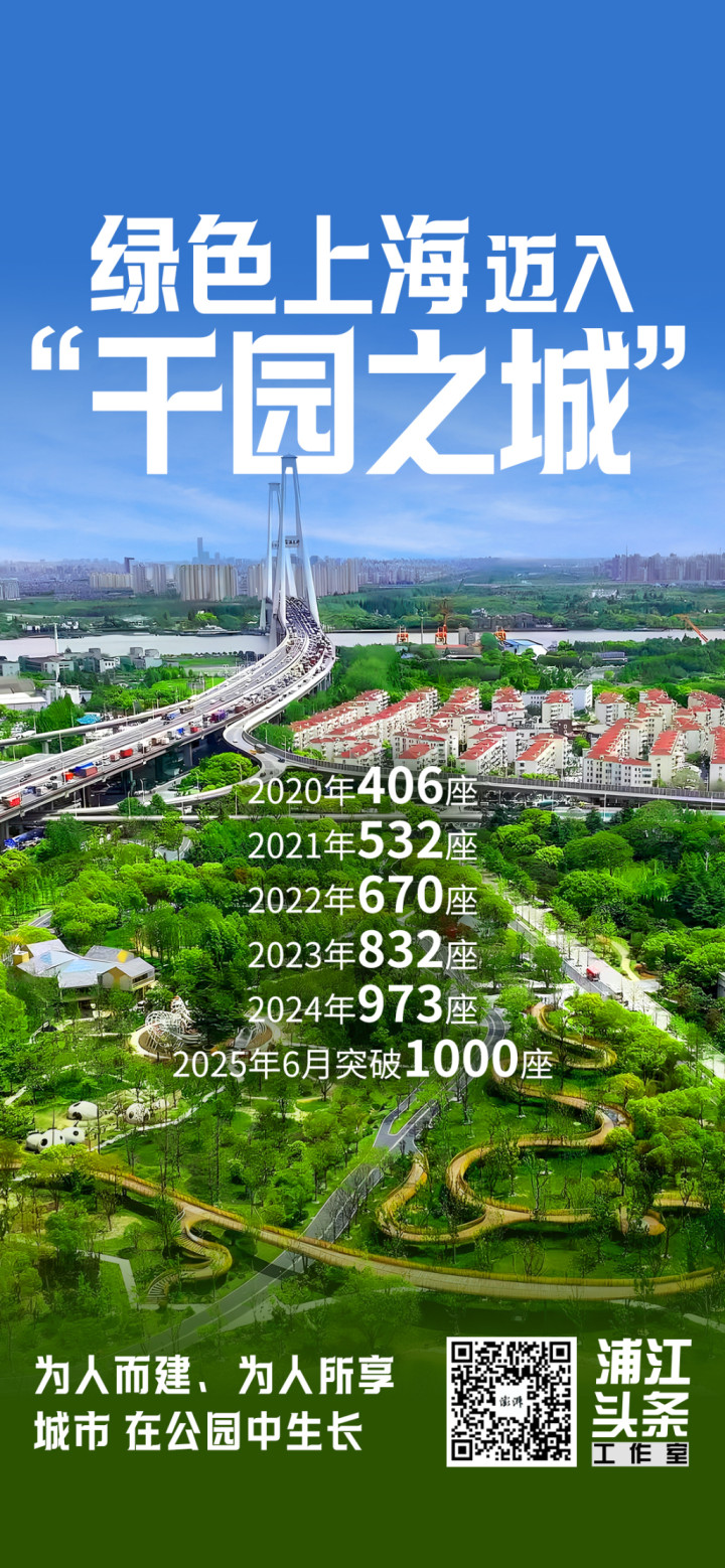 近年来,上海的公园建设如雨后春笋般蓬勃发展。从2020年的406座,到2021年的532座,2022年的670座,2023年的832座,再到2024年的973座,2025年6月总量已达1013座。在这1013座城乡公园中,其中城市公园522座、口袋公园371座、休闲森林公园119座、主题公园1座。绿色,正在这座城市中以前所未有的速度蔓延。