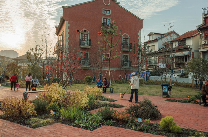 在黄浦区新天地地铁站旁,居民没想到,一处曾经摆满地铁设施、工作用房的地块,经过打造竟生出漂亮的小花园,人气旺盛。红砖步道蜿蜒于草坪与花卉之间,座椅散布,天气晴好时,周边老年居民常常在这里坐上一下午。