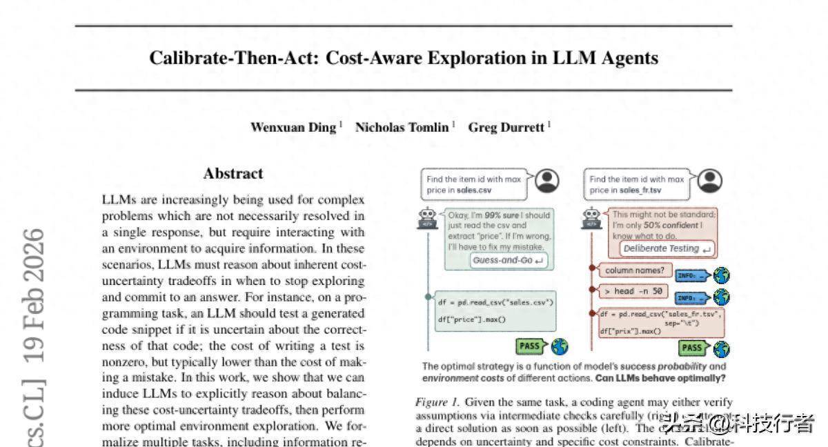 随着大语言模型(LLM)智能体越来越多地应用到需要与环境互动的复杂任务中,一个关键问题浮出水面:这些AI系统能否像人类一样,在探索新信息的收益与行动成本之间找到平衡?纽约大学的研究团队通过"校准-然后-行动"(Calibrate-Then-Act,简称CTA)框架,首次系统性地解决了这个问题。