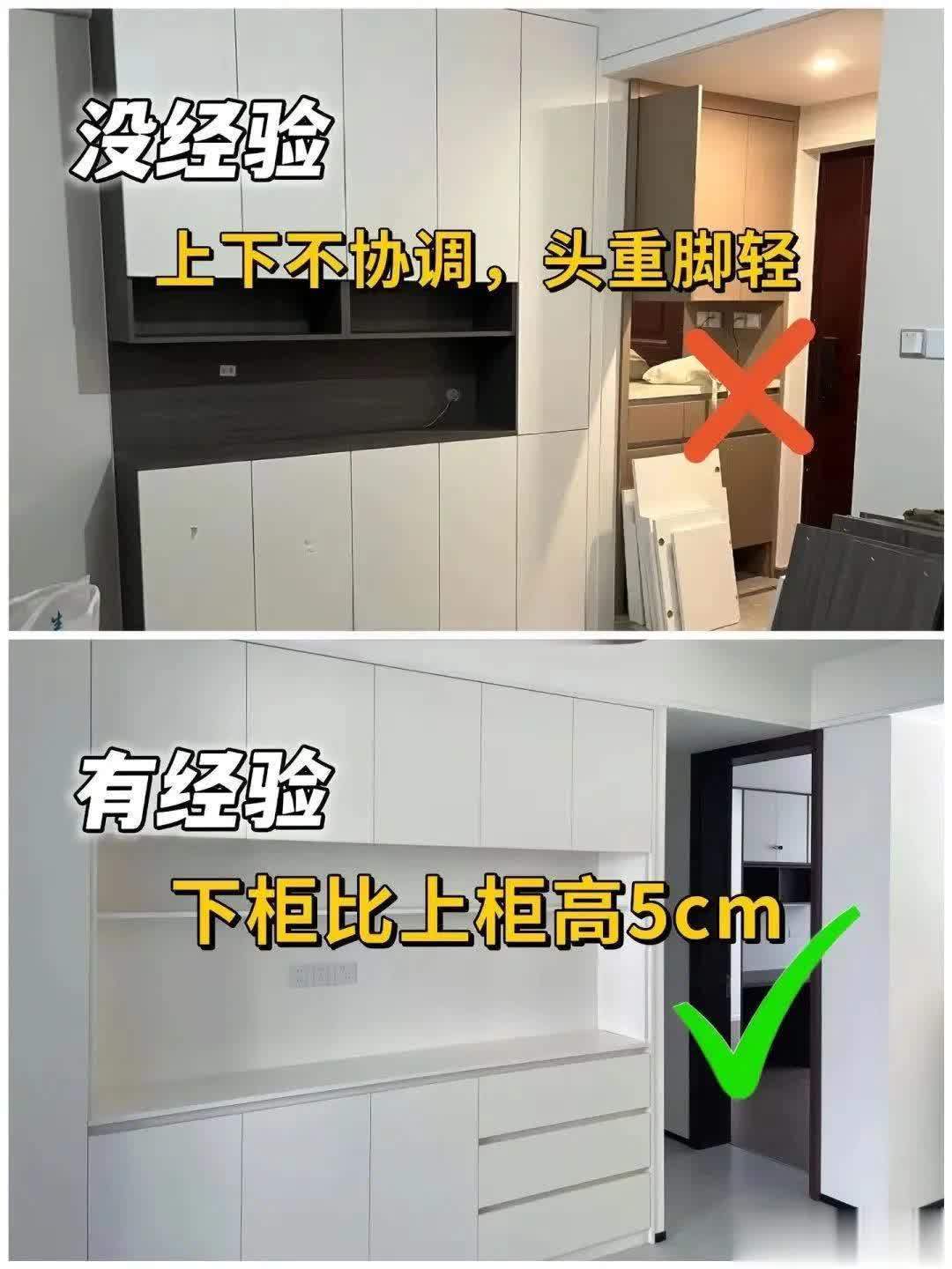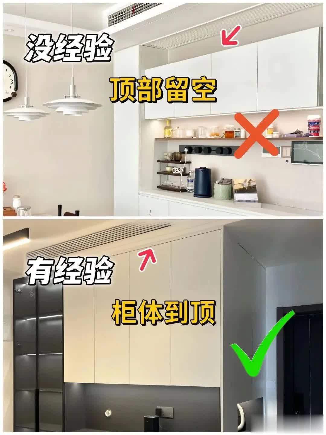 - 柜体必须到顶:顶部留空就是积灰天堂,装到顶省了爬高擦灰的麻烦,还显层高!