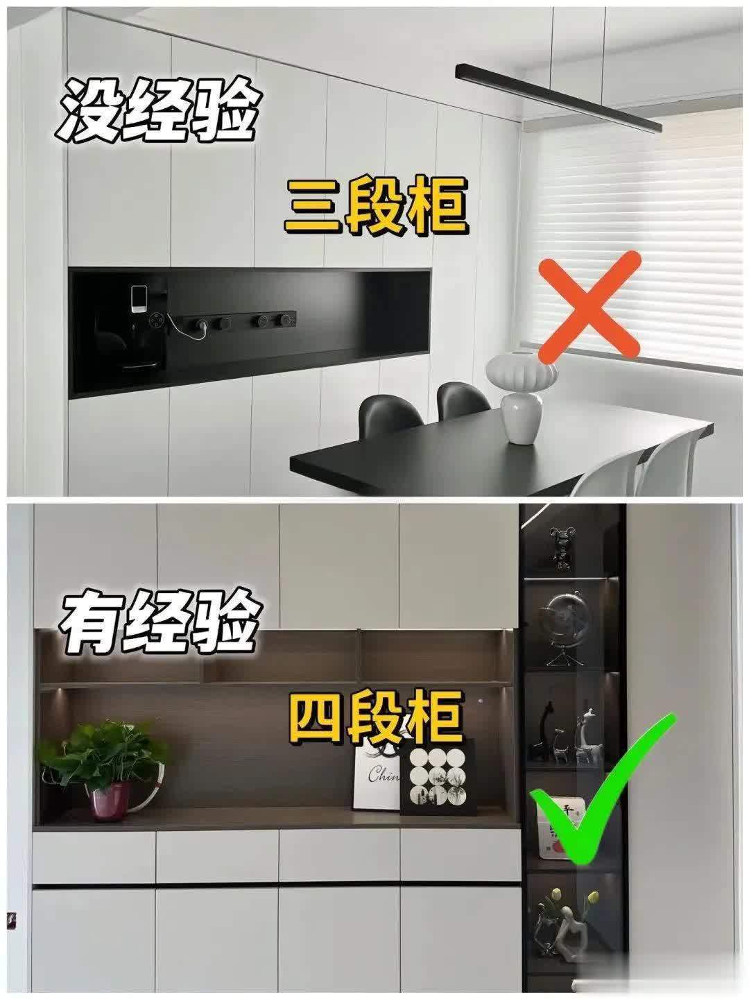 - 选四段柜别选三段:三段柜中间隔板太矮,红酒瓶都放不进去,四段分层才实用!
