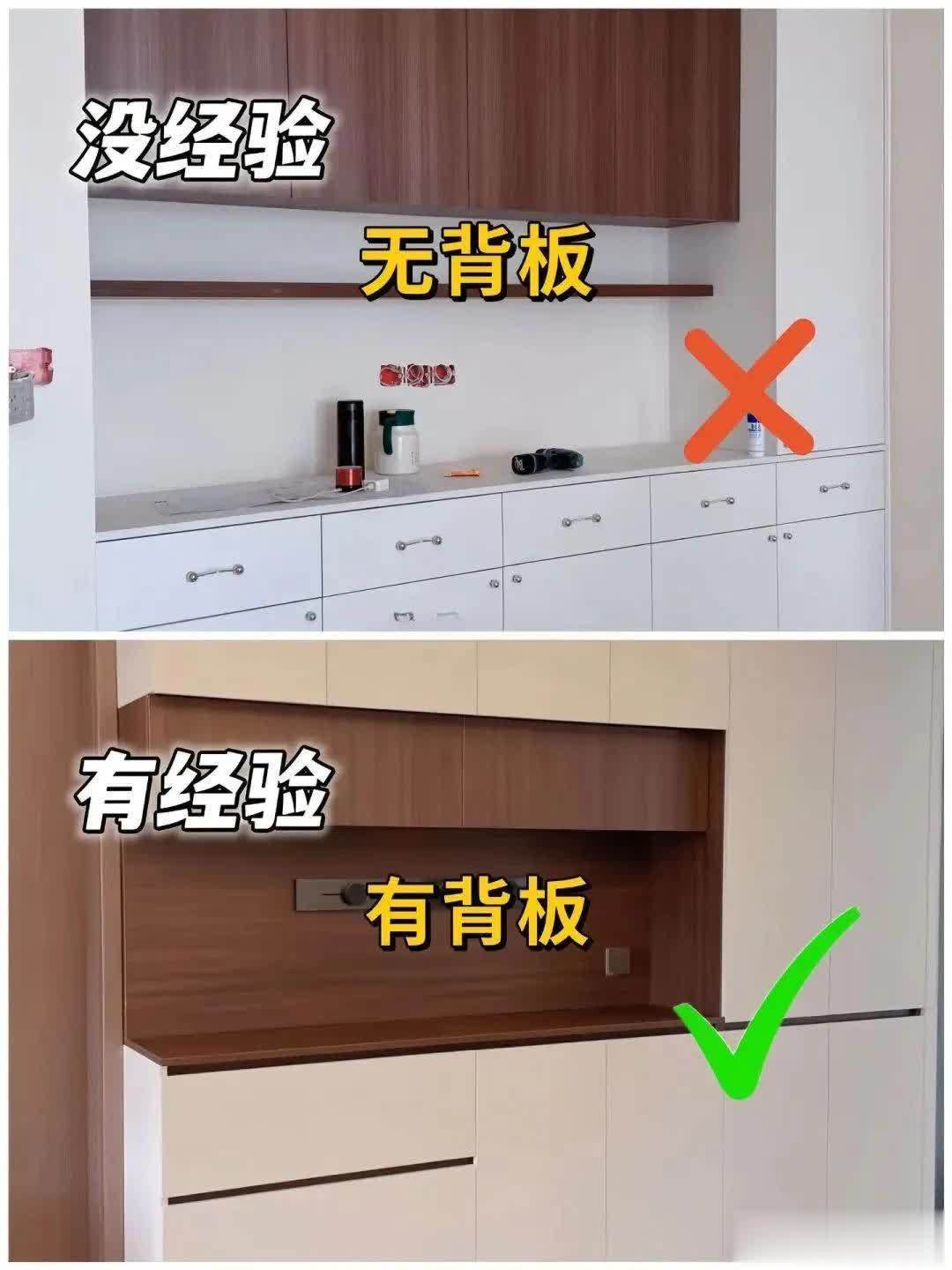 一、结构设计:这5处错了全柜报废- 必须做背板:没背板的柜子像纸糊的,靠墙一侧必须加9mm厚背板,防潮又稳固!