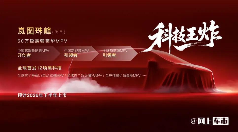 1月28日,岚图汽车公布了2026年新品计划,其中代号“珠峰”的50万级豪华MPV格外受关注,直接瞄准极氪009所在的高端市场,这款车集结了岚图品牌的顶级技术。