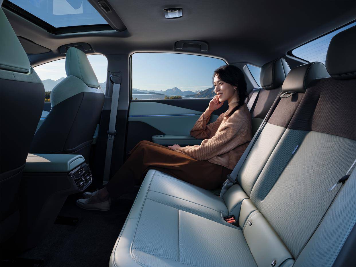 一汽丰田bZ3的后排空间十分宽敞,再配合宽大的坐垫、合理的靠背角度、后排地板纯平设计,乘坐体验十分舒适。